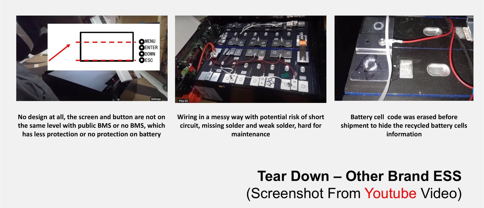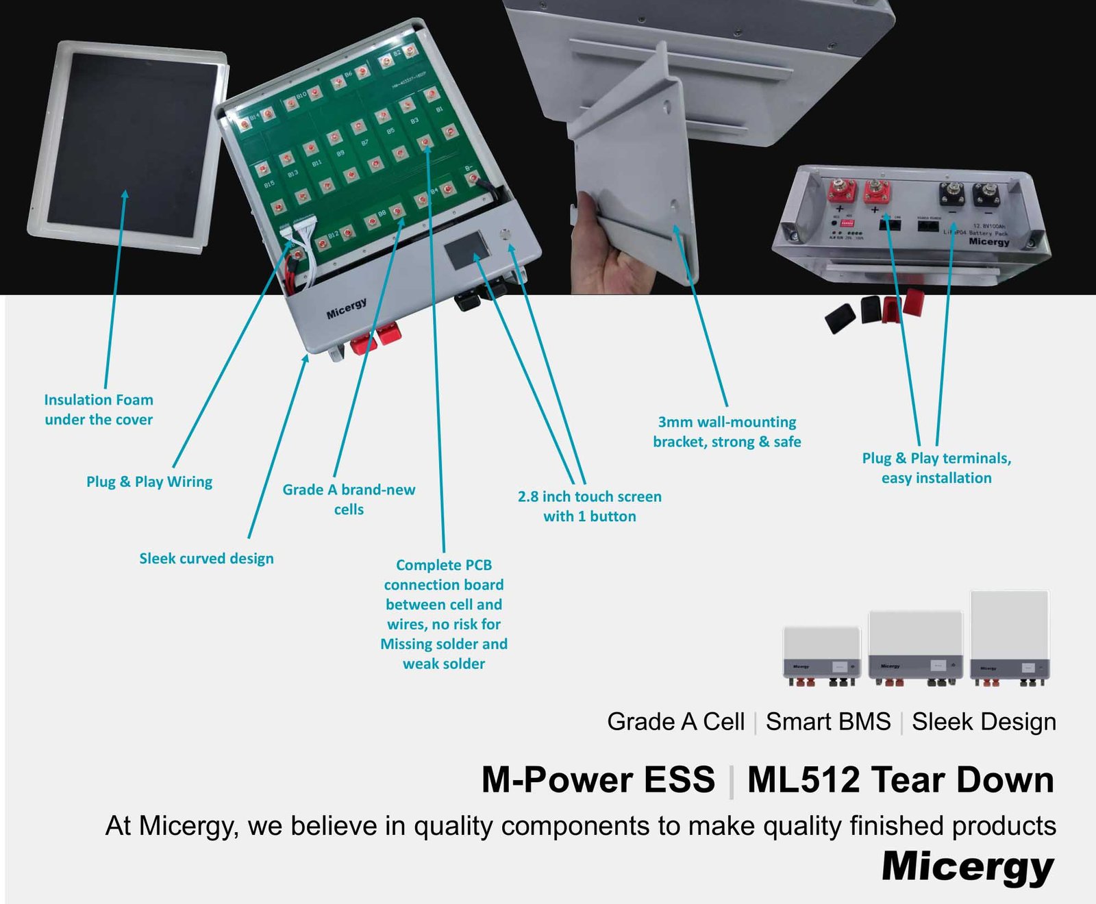 For products that do not have very high-quality requirements, some battery manufacturers on the market will choose to use B-grade cells to produce all kinds of battery packs, they may promise you A-grade cells, while finally supplying you with B-grade cells, and you can't easily differentiate them after you receive the goods, only after you receive customer complains on product quality, you realize you may be cheated by the suppliers, so it's highly recommended to select suppliers with a good reputation with proven records, the battery cell is the key for quality of the battery pack for sure, however, other components like BMS, housing and accessories are also important too, for example, let's we take a closer look by tearing down Micergy wall-mounted ESS with other brand wall-mounted ESS to check their differences: