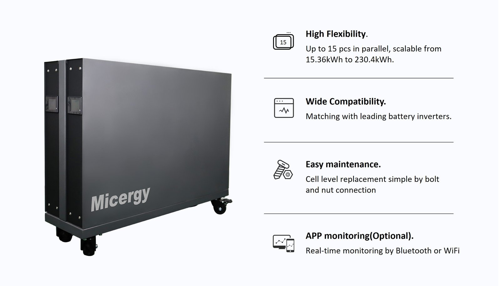 Micergy only uses Grade A brand-new cells with long lifespan, 8000 cycles.