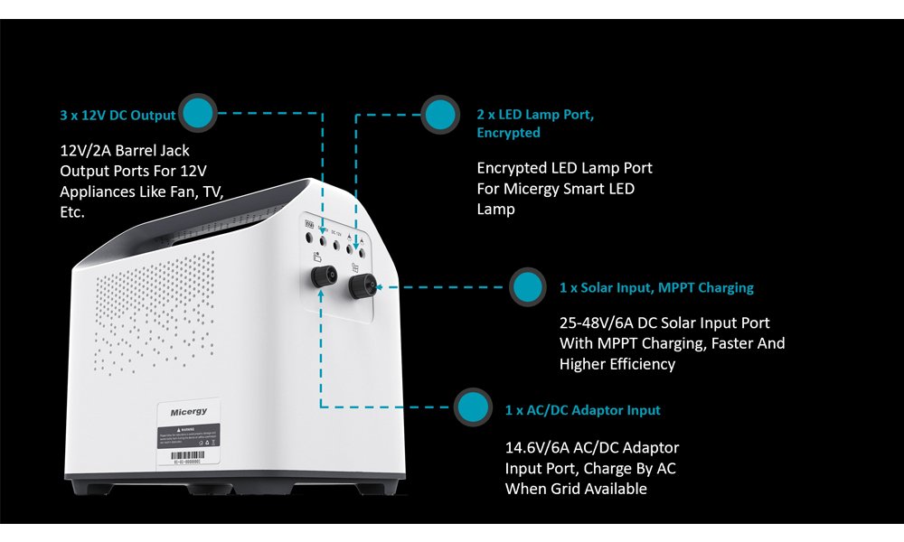 - Optional Accessories: AC/DC Adaptor, Solar Panel, LED Bulbs, DC Fan, DC TV, DC/AC Inverter